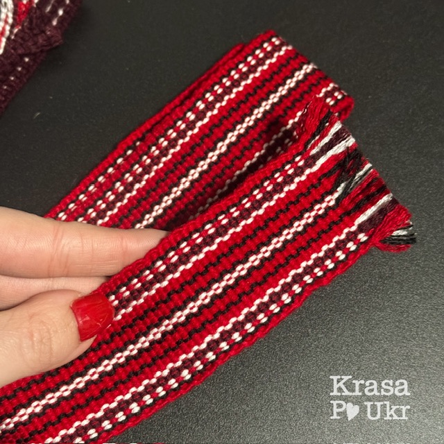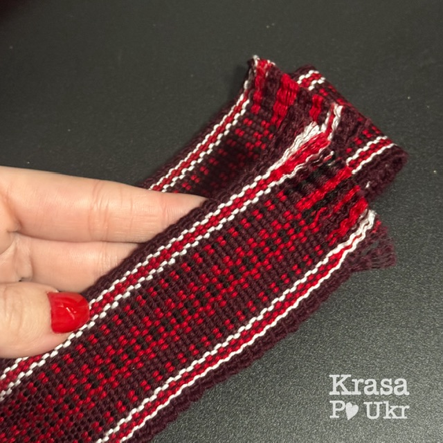 Ткана крайка в українському стилі — це автентичний етно елемент, який поєднує традицію, символіку та практичність. У наборі представлено три різні види крайки, виконані в червоно-бордовій палітрі з контрастними вкрапленнями чорного та білого кольорів.