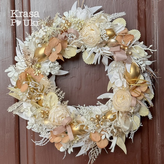 Великодній вінок, дизайн “світле свято” з золотими нотами