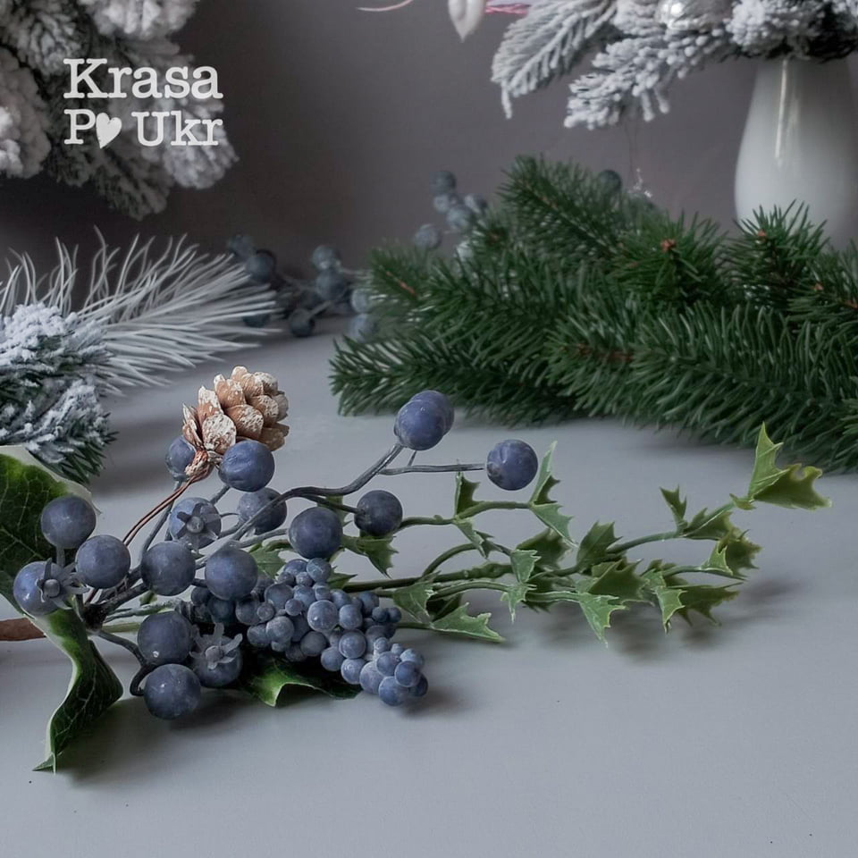 Гілочки калини та шипшини, прикрашені кристалами “снігу”, для природного акценту.