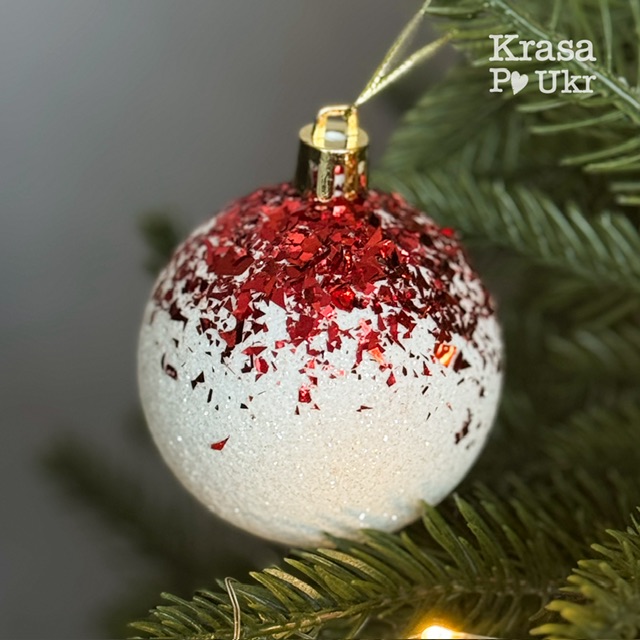 Ялинкова куля “бите скло” – біла з червоним, 6 см – 1 шт або 6 шт