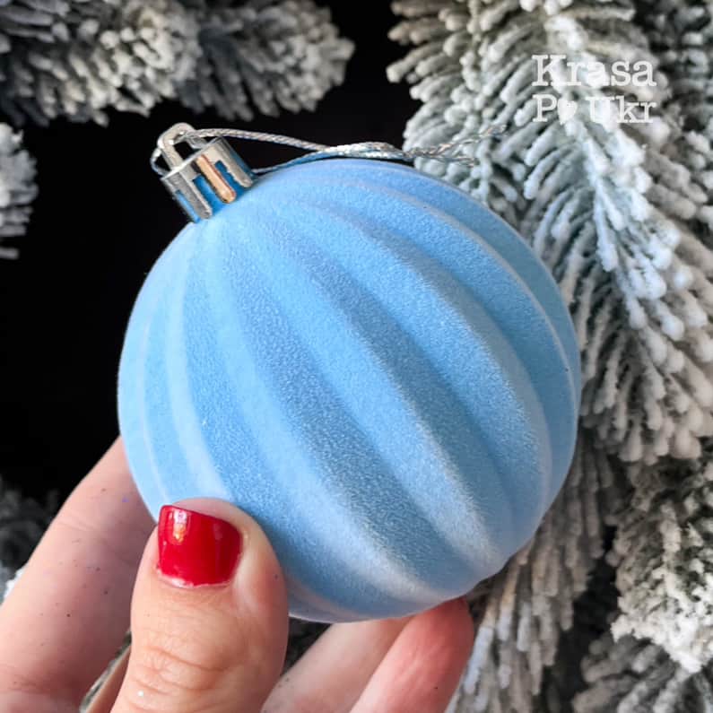 Бархатні ялинкові кулі “рельєфні”, блакитні, 8 см – 1 шт або 6 шт