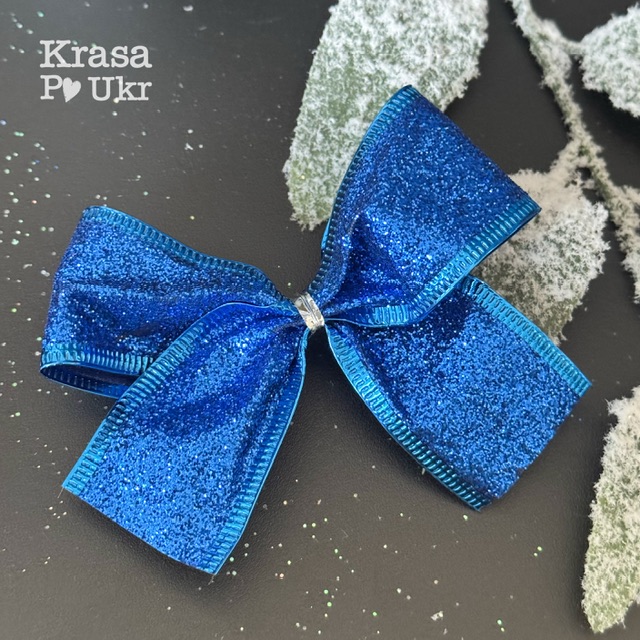 Бант (10 см) “метал” з глітерної новорічної стрічки – синій