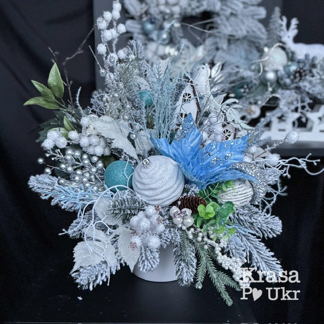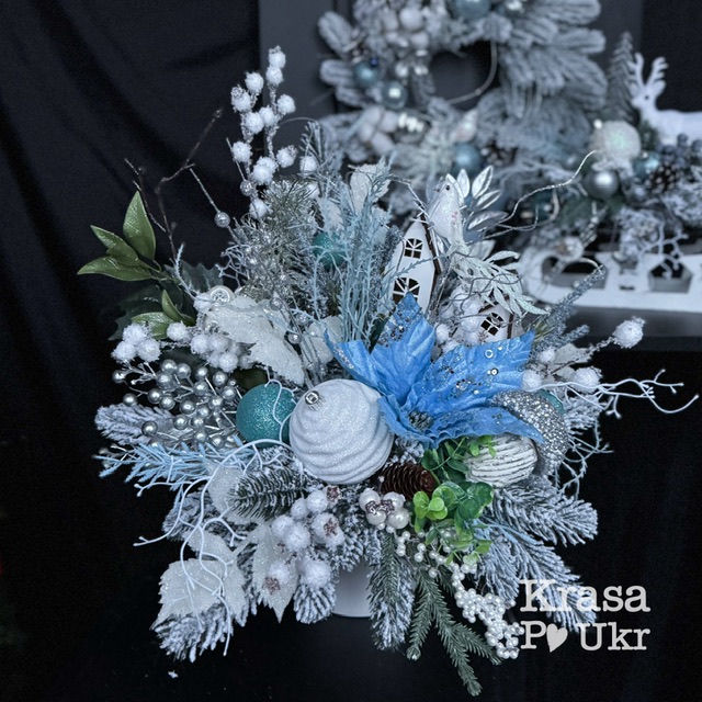 Композиція РІЗДВЯНЕ МІСТЕЧКО 45 см, колекція “Новорічні історії”, дизайн “блакитна пастель”