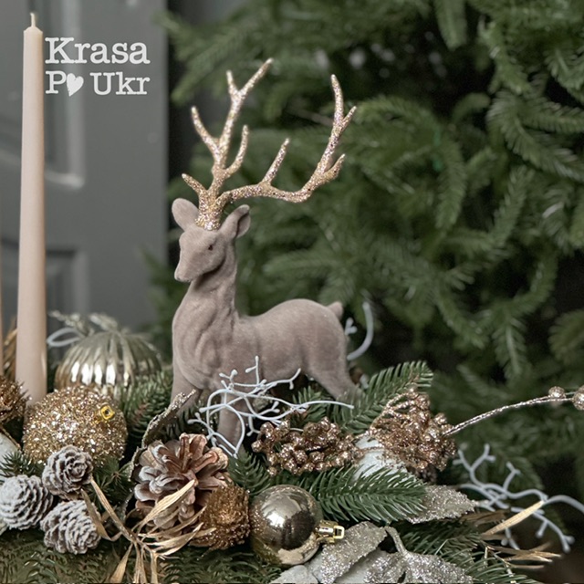 Підсвічник 55*30 см ЗАЧАРОВАНИЙ ОЛЕНЬ, колекція “Новорічно-різдвяні історії”, дизайн “мокко-золото”