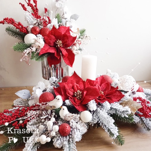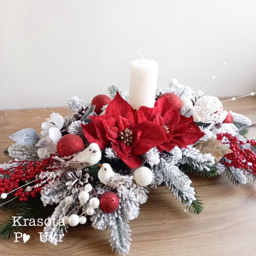 Підсвічник-композиція (70 см), колекція “Різдвяна класика”, дизайн «пуансетія»