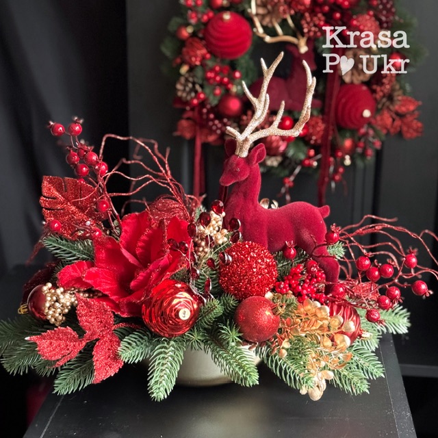 Різдвяна композиція та вінок “Зачарований Олень” — колекція “Різдвяна класика”