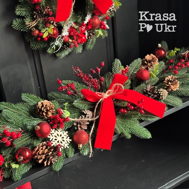Різдвяний комплект – 2 вироби – колекція “Різдвяна класика” – гірлянда та вінок