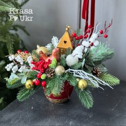 Композиція БУДИНОЧОК-ПТАШКА, колекція “Різдвяна класика”, дизайн «червоне-золото» (30 см)
