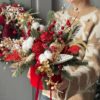 Ця святкова композиція з колекції «Різдвяна класика» створена для тих, хто обожнює поєднання розкоші, тепла та атмосферності зимових свят. Вона виконана в бархатному червоному кашпо, яке вже саме по собі додає елегантності, а в тандемі з глибокими червоно-золотими відтінками утворює особливу різдвяну гармонію.