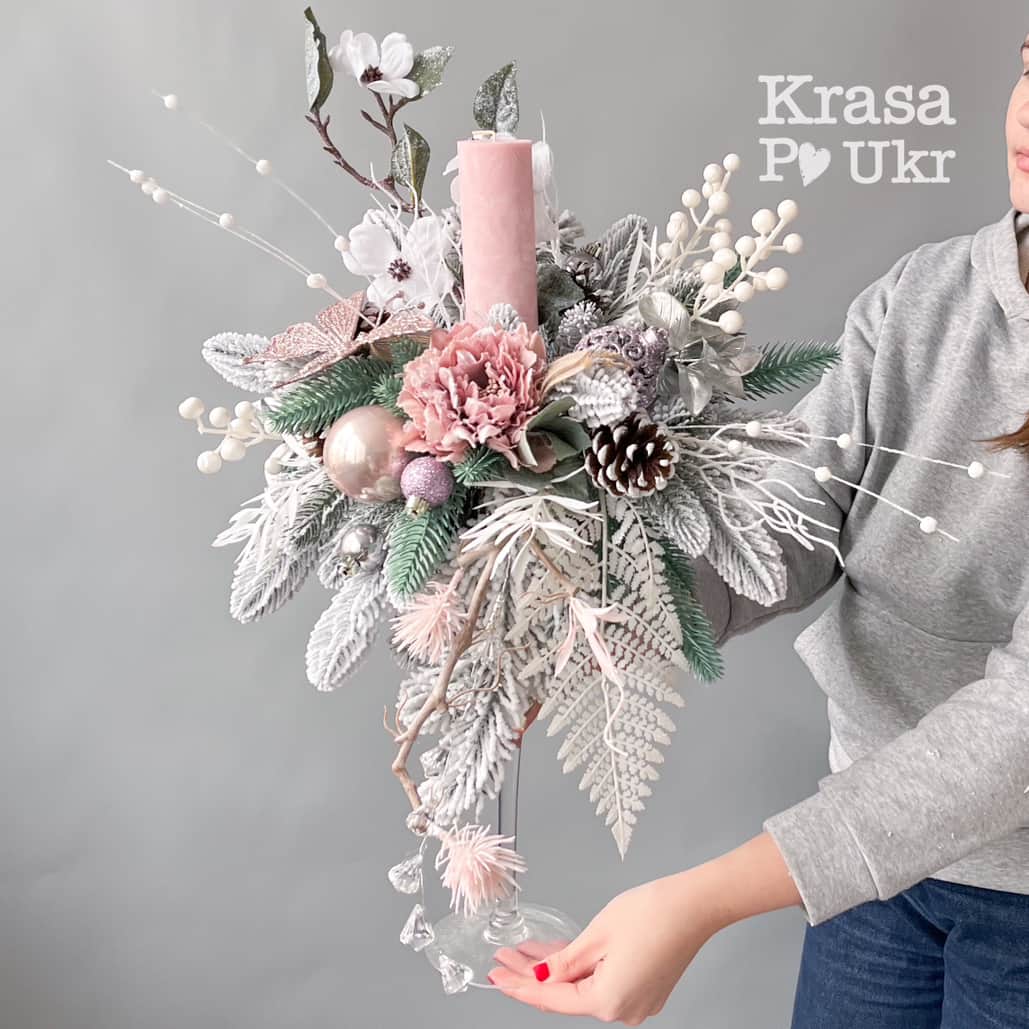 Новорічна композиція у бокалі (висота на вибір), колекція “Новорічні історії”, дизайн “ожина”