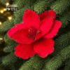 Новорічна магнолія оксамитова 20 см з глітером на пелюстках, королівський червоний