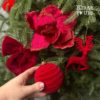 Різдвяний набір декору для ялинки у розкішному бордовому кольорі — це ідеальний вибір для створення елегантного та святкового декору ялинки. Комплект включає велюрові бантики бордового кольору, бархатні оксамитові ялинкові іграшки у формі оленів, бархатні кулі 8 см, а також оксамитові квіти магнолії на ніжках із блиском.