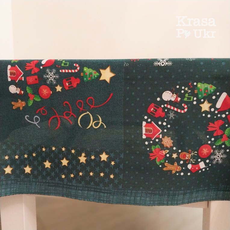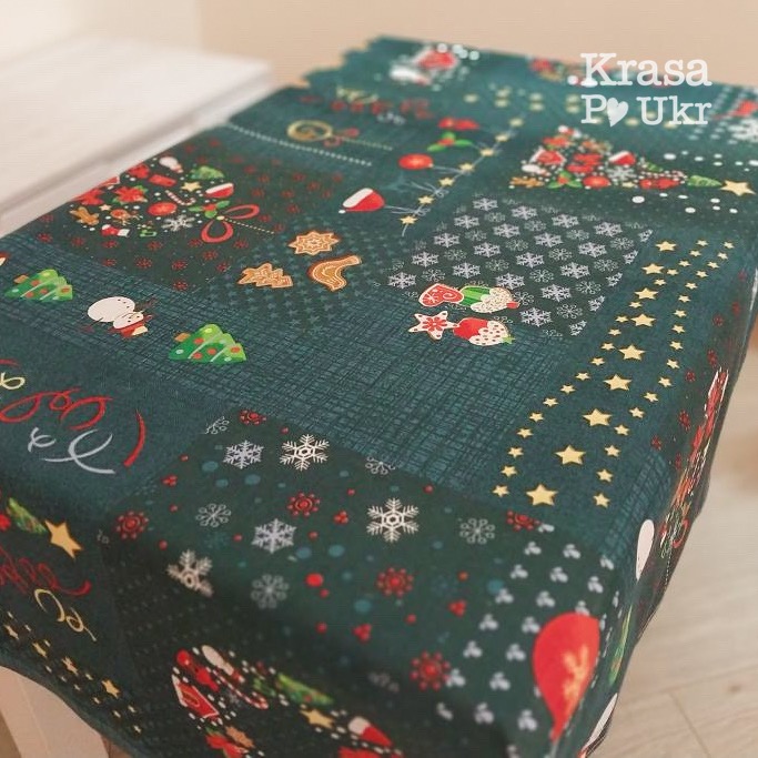 Скатертина на стіл з візерунком (110*160 см), “різдвяна історія”, темно-зелена