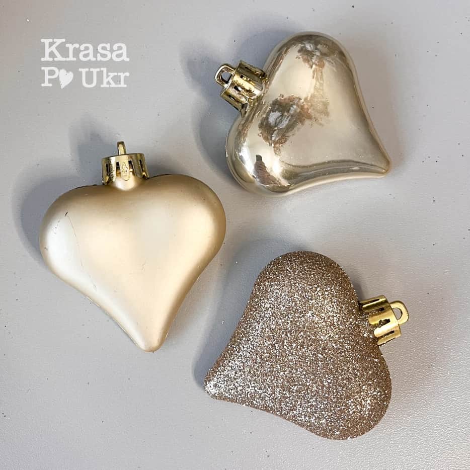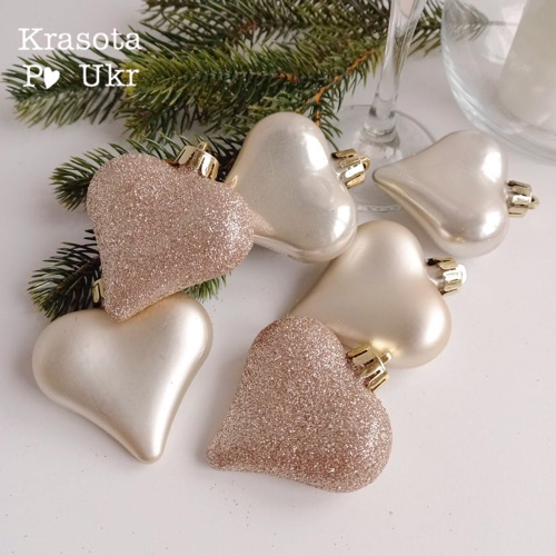 Новорічна іграшка серце (6 см) шампань – 3 шт або 6 шт