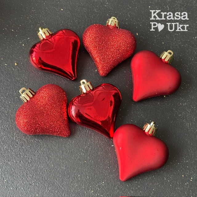 Новорічна іграшка серце (6 см) – 3 шт або 6 шт – королівський червоний
