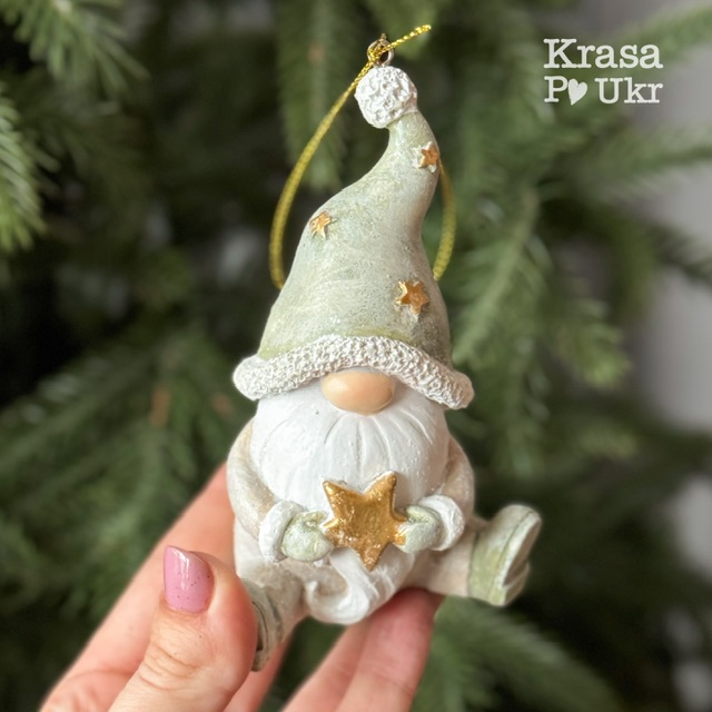 Керамічна іграшка 11 см на ялинку “гномик “, зелений