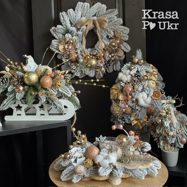 Засніжена ялинка з колекції «Ароматне Різдво» висотою 50 см. Доступна у варіантах одностороннього або всестороннього декору. При всесторонньому оформленні додаються додаткові декоративні елементи. На сайті можна підібрати інші вироби цієї колекції.