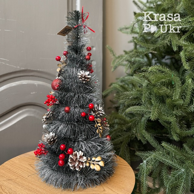 Висота — 50 см, тому ялинка виглядає дуже об’ємною, але при цьому легко розміщується на будь-якій поверхні, не займаючи багато місця. Вона стане чудовою прикрасою вітальні, кухні-студії, офісу, рецепції чи святкового столу.