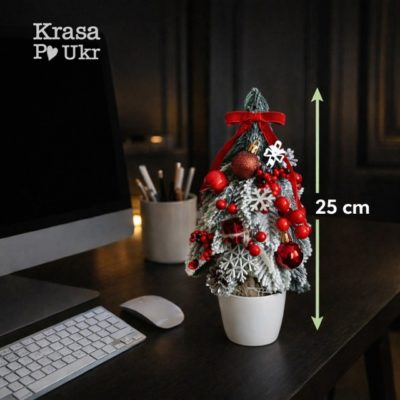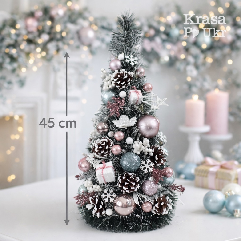 Новорічна ялинка “Янголя” 45 см, дизайн “пудра-блакить” (декор з усіх сторін)