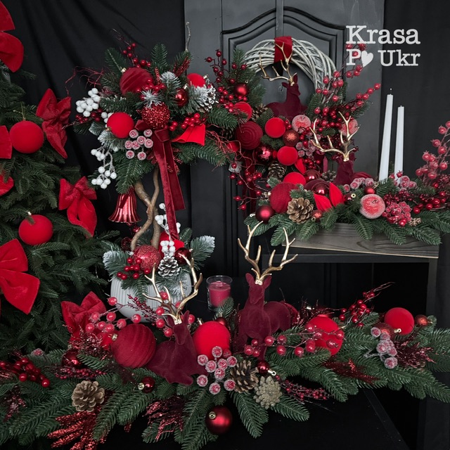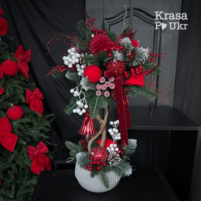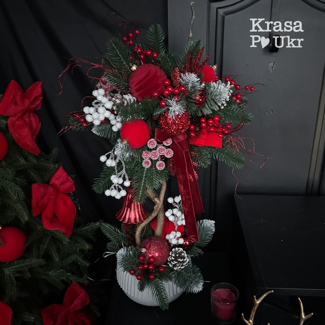 Різдвяне деревце-ялинка з колекції “Королівський червоний” має висоту орієнтовно 50-55 см або 65-70 см.