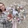 Центральний герой — білий оксамитовий олень із золотими рогами. Вишуканий, світлий, легкий — він задає всій композиції характер і додає казковості. Під ним — розкішна бархатна магнолія у кольорі карамельне лате та делікатний велюровий бантик із блискучими ниточками.