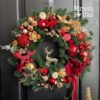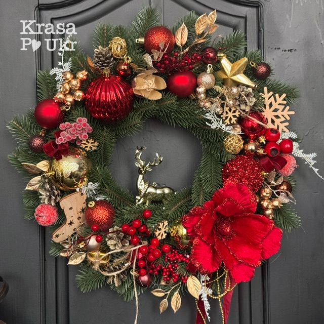 Вінок на двері, колекція “Різдвяна класика”, дизайн «червоне-золото» з оленем (50 см)