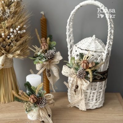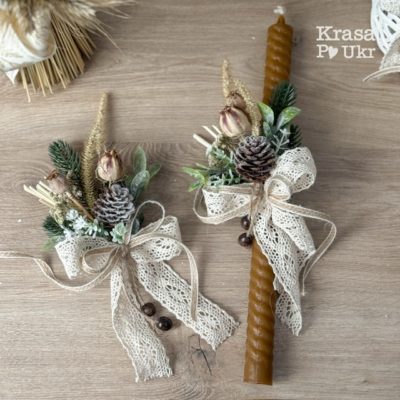 Воскова стрітенська свічка (30 см) з декором або декор “зелень та сухоцвіти”