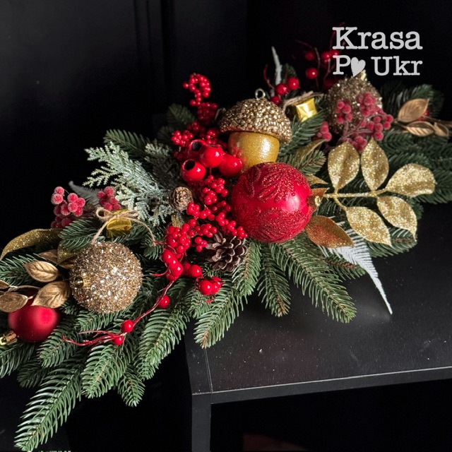 Ялинкова гірлянда-композиція, “Різдвяна класика”, дизайн «червоне-золото» 1,1 м або 65 см