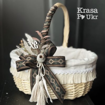Кошик великодній, модель “овал”, дизайн “українська вишиванка” (35 см або 40 см) – з чохлом або без