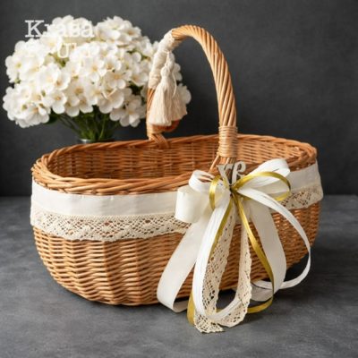 Кошик 35 см “прямокутний” на Великдень натуральний, дизайн “мінамалізм”