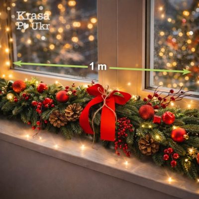 Гірлянда лита зелена, “Різдвяна класика” з бархатним бантом – 1 м, 1,5 м або 2 м